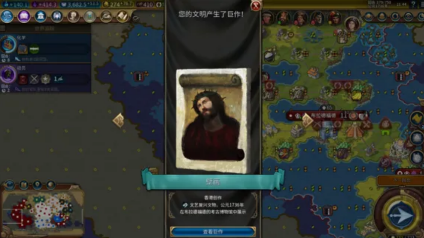 首頁 文明6 問答 文明6文物巨作怎麼獲得? 2022-09-10 玩家需要提高文化值,招募偉人、考古學家來挖巨作,巨作是統稱,具體細分為宗教遺物、文學作品、藝術品(畫、雕塑等)、音樂作品;每個作品對應的槽位需要建築或奇觀,首都的宮殿可存放1個任何巨作。