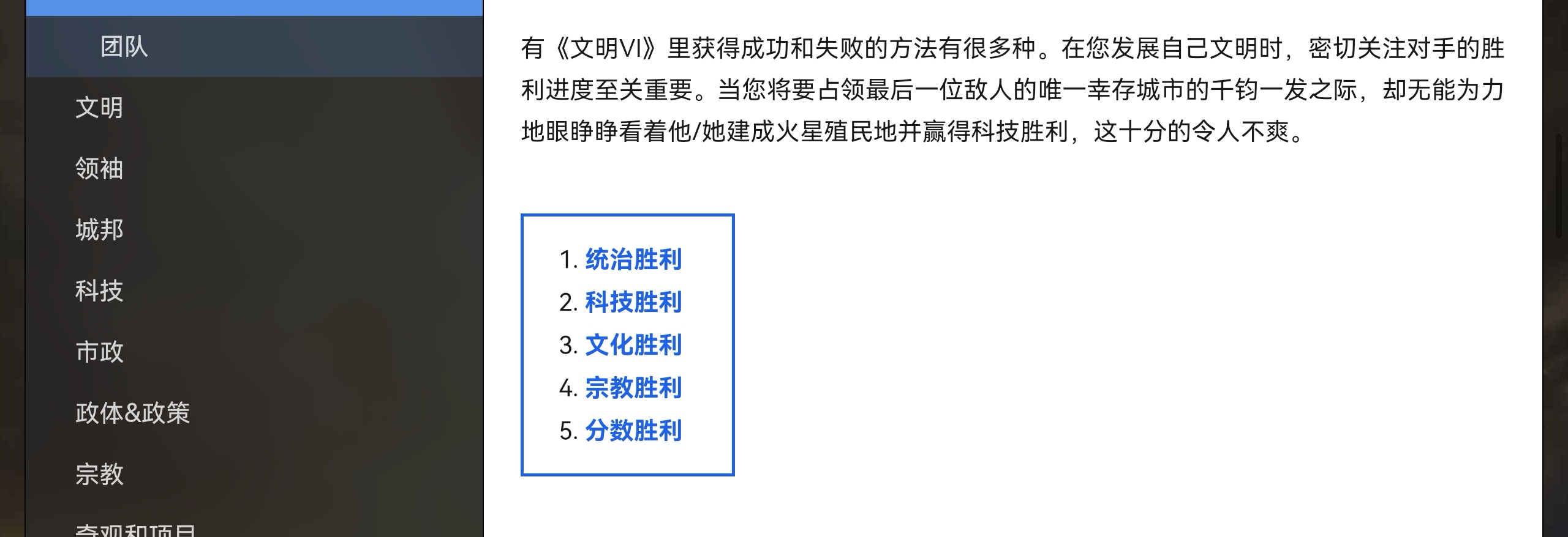 首頁 文明6 問答 文明6勝利方式有幾種? 2022-09-10 由文明6官網上給出了6種勝利方式:統治勝利、科技勝利、文化勝利、宗教勝利和分數勝利新版本風雲變換更新後又加了一種外交勝利所以一共6種獲勝方式。