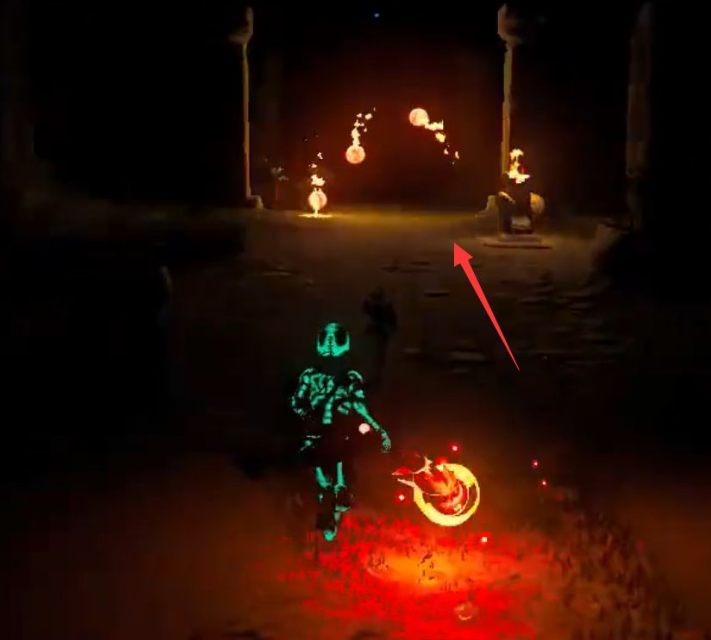 3、按照火球亮光和小地圖指引,前往遺跡中心地帶。