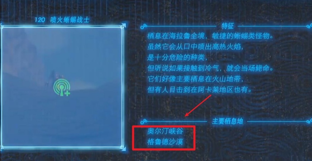 1、看你要找哪種蜥蜴戰士的尾巴,比如這里我們找紅色蜥蜴尾巴,我們需要找到火蜥蜴,需要來到火蜥蜴的主要棲息地,如下圖所示: