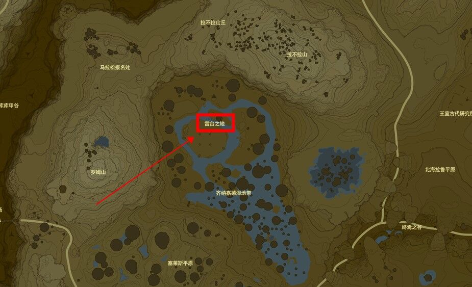 首頁 塞爾達傳說:荒野之息 問答 塞爾達雷之台地在哪? 2022-09-11 塞爾達傳說遊戲中的雷台之地位置介紹:玩家找到齊納嘉萊濕地帶就可以看到雷台之地了,首先玩家需要先來到海拉魯丘陵地區,然後玩家往這個山谷裡面走,經過齊納嘉萊濕地帶後繼續往前走,看到四面環水的島嶼就是雷台之地了,具體位置如下圖。