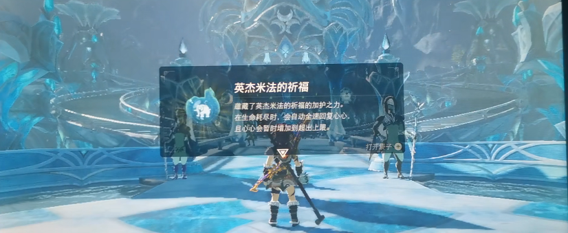 4.塞爾達英傑技能【英傑達米法的祈福】,解開水神獸【瓦露塔】即可獲得,可以在生命耗盡時,自動全速回復心心,且心心會暫時增加到超出上限
