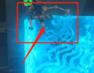 3、我們上去樓梯之後,先使用製冰器,我們就可以拿到河道邊的寶箱,寶箱裡面有兩個藍寶石和斬風羽槍。