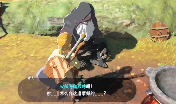 3、然後就會掏出火辣海陸煎烤料理給老人。