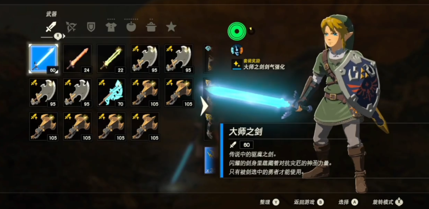 首頁 塞爾達傳說:荒野之息 問答 塞爾達傳說大師劍會壞嗎? 2022-09-21 1.塞爾達傳說大師劍是不會永久性壞掉。大師之劍會出現圖中所示的【大師之劍的力量變弱了】,這時只要等待十分鍾就會自動修復,因此大師劍是不會永久壞掉的2.背包里的大師之劍如圖所示閃光的就是已經修復成功了