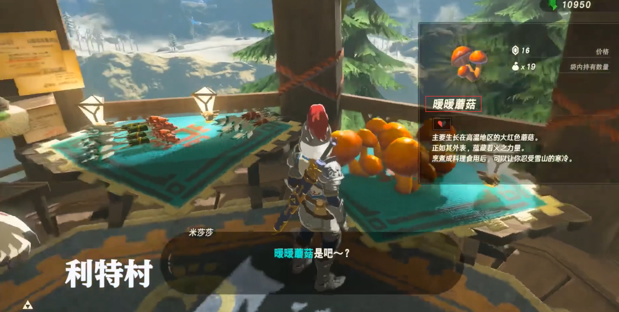 首頁 塞爾達傳說:荒野之息 問答 塞爾達暖暖蘑菇哪裡刷? 2022-09-26 1.塞爾達暖暖蘑菇可以在摩拉塔神廟南側的樹林里刷2.圖中箭頭指向的樹林里3.在樹林里可以刷到大量暖暖蘑菇4.另外還可以去利特村的雜貨店裡買5.如圖在雜貨店裡購買暖暖蘑菇,每次血月後都會刷新,是一個刷暖暖蘑菇不錯的地方