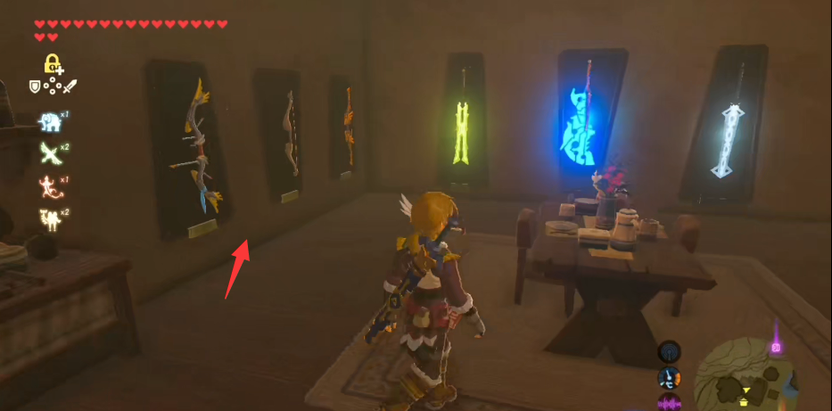 首頁 塞爾達傳說:荒野之息 問答 塞爾達只能陳列三個武器嗎? 2022-09-27 1.塞爾達林克的家在裝修完之後一共可以放置9個武器架,如圖所示正前方是三個放置大劍的武器架,右邊是三個放置盾牌的武器架2.在房間的左邊是三個放置武器的弓箭架