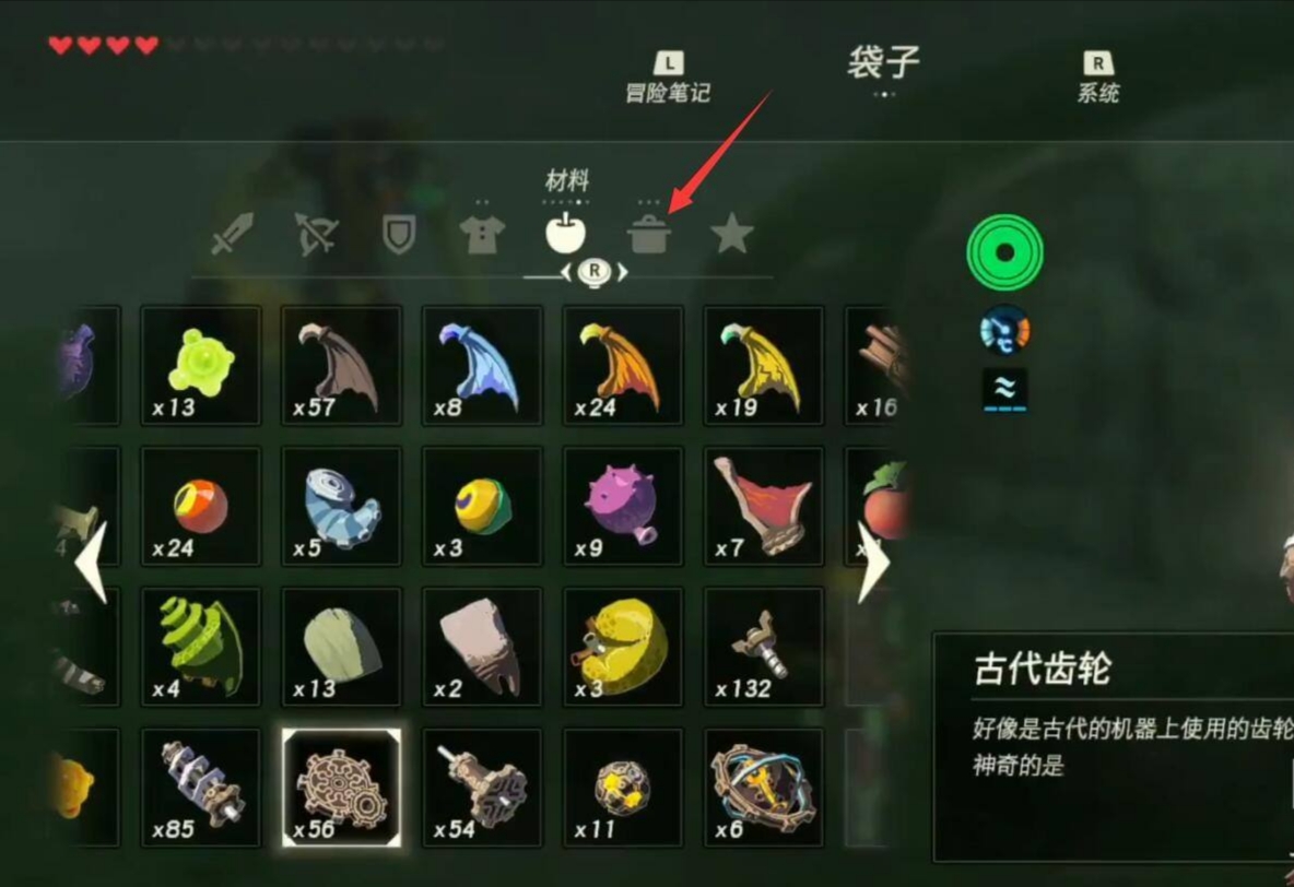 2、打開袋子後,我們使用R鍵,選擇料理圖標,進入料理的界面