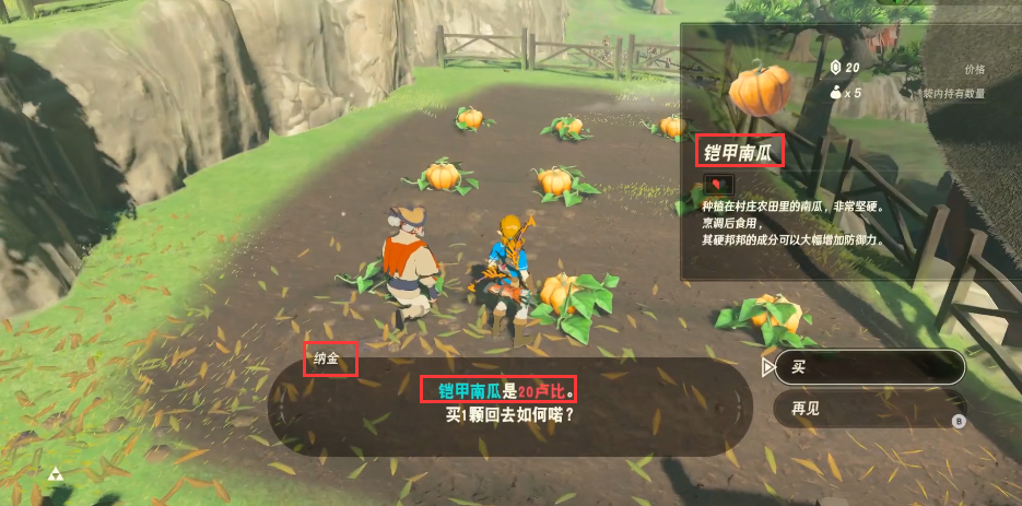 1.塞爾達卡卡利科村南瓜是指鎧甲南瓜,在卡卡利科村往大精靈之泉方向的路旁邊買,如圖箭頭指向的位置