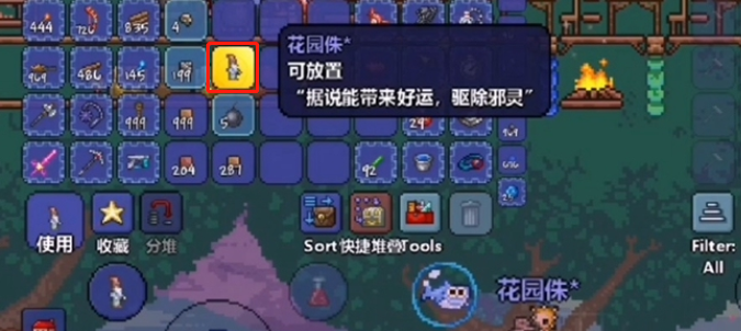 1、花園侏儒在遊戲中屬於可以擺放的傢具道具,生成條件是侏儒碰到陽光後石化變為花園侏儒,使用後會獲得幸運值加0.2的運氣。