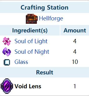 15、虛空透鏡:光明之魂和暗影之魂各4個、10個玻璃前往地獄熔爐製作;