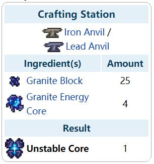 ①、4塊花崗岩能源核心、25塊花崗岩塊前往鐵砧/鉛砧製作;