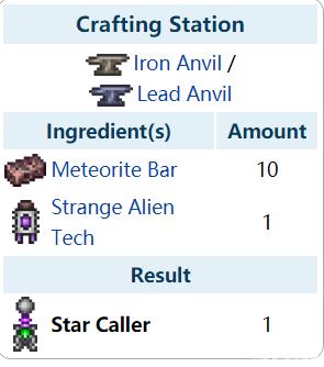 11、星際召喚器:10塊隕鐵錠、1個外星人科技前往鐵砧/鉛砧製作;