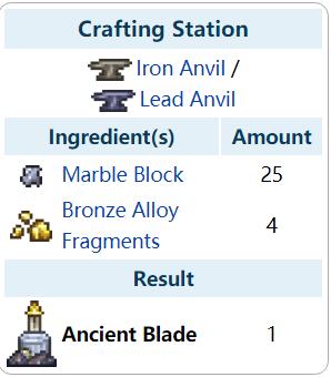 ①、25個大理石塊、4個青銅合金碎片(機翻...)前往鐵砧/鉛砧製作;