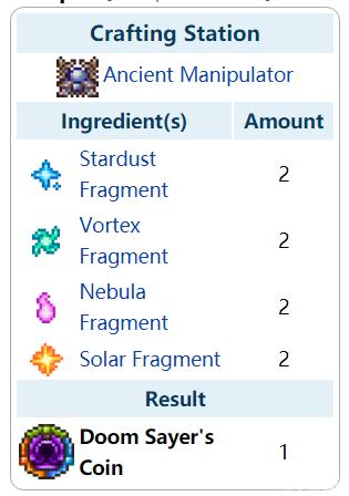 21、末日幣章:星塵碎片、星旋碎片、星雲碎片、日耀碎片每種各兩個前往遠古操縱機製作;