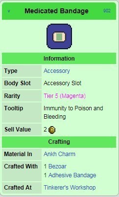 首頁 泰拉瑞亞 問答 泰拉瑞亞怎麼獲得藥用繃帶? 2022-10-04 1.醫用繃帶:免疫異常狀態中毒和流血,是製作鷹神的護身符的材料之一。2.泰拉瑞亞醫用繃帶獲取方式:醫用繃帶無法通過怪物掉落,只能在飾品工作台合成,合成所需的材料是:粘性繃帶 牛黃。