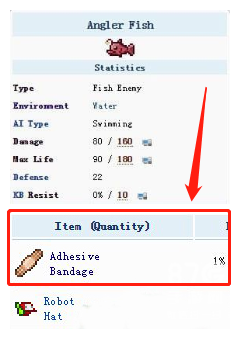 1.琵琶魚:該生物是肉山後在洞穴和叢林的水中生成的怪物,只要將其擊敗就有幾率獲得繃帶。