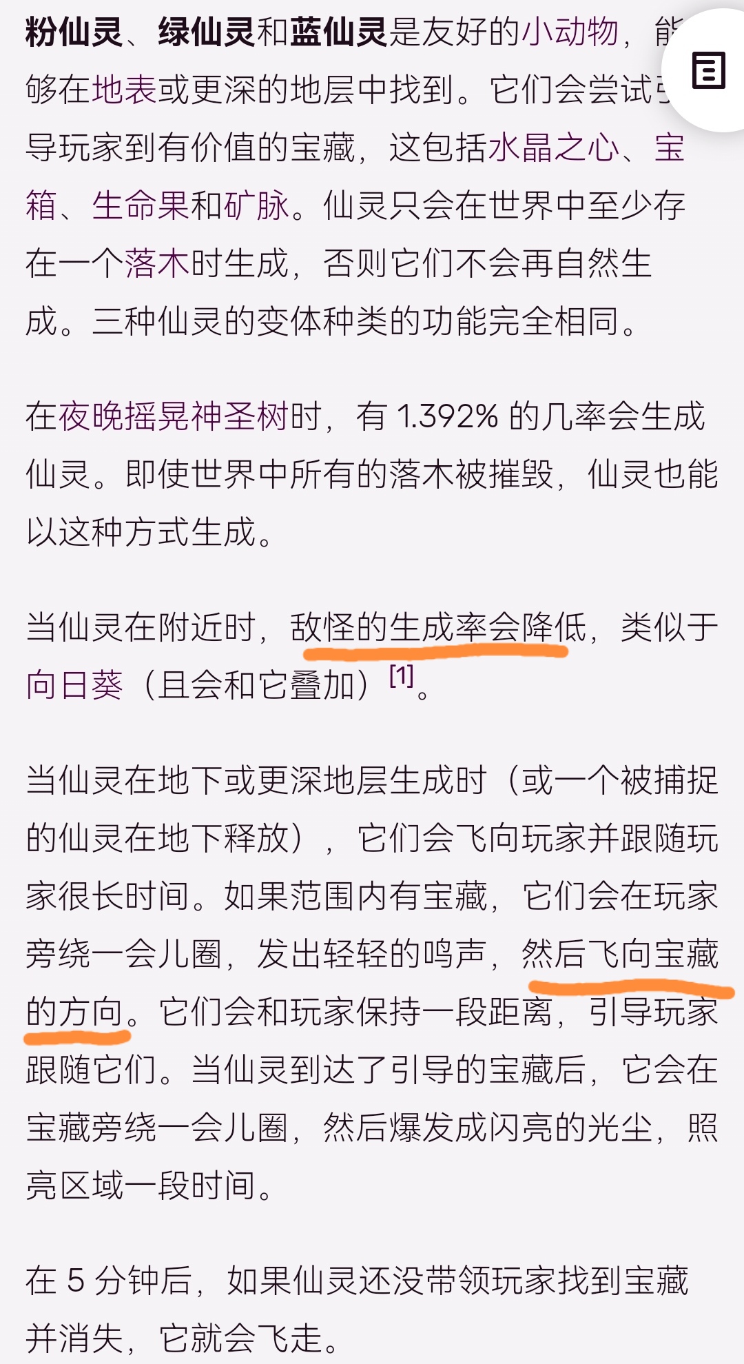 首頁 泰拉瑞亞 問答 泰拉瑞亞藍仙靈有什麼用? 2022-10-06 藍色仙靈是仙靈的一種,當仙靈在附近時,笛怪的生成率會下降,當仙靈在地下的時候飛向玩家並指引玩家附近寶藏的位置,當仙靈到達指引的保障時,他會先繞一會兒圈,然後爆發成閃亮的光,照亮這一片區域
