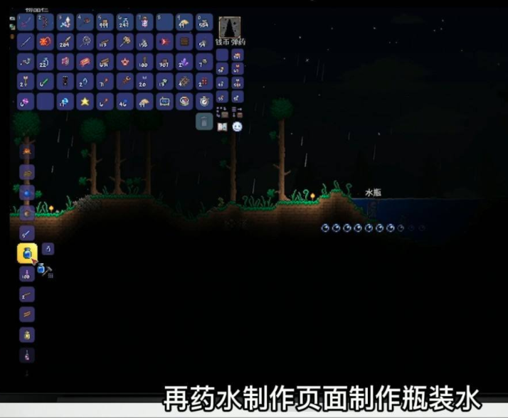 首頁 泰拉瑞亞 問答 泰拉瑞亞怎麼獲得瓶裝水? 2022-10-07 1、靠近熔爐,打開製作列表,使用沙子製作出玻璃。2、使用剛剛製作出的玻璃,製作出空瓶。3、攜帶空瓶,靠近任意水源。4、開啟製作頁面,在藥水製作頁面,製作瓶裝水。