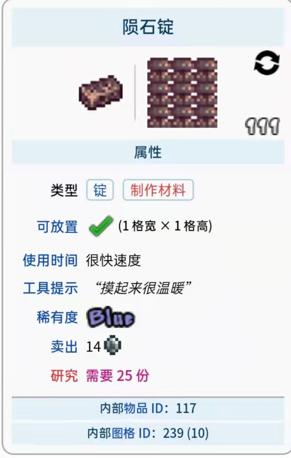 首頁 泰拉瑞亞 問答 泰拉瑞亞隕石錠怎麼獲得? 2022-10-08 隕石錠獲得方法介紹:在遊戲《泰拉瑞亞》中,玩家可以在熔爐處用隕石合成獲得隕石錠,玩家可以用隕石錠來製作流星錘斧、流星頭盔、流星護腿、流星彈、流星護甲、太空槍、星星炮、流星法杖、鑽頭控制裝置和各種顏色的隕石光劍。