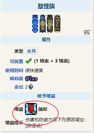 首頁 泰拉瑞亞 問答 泰拉瑞亞怪物旗幟有什麼用? 2022-10-08 放置狀態下的敵怪旗(怪物旗幟)能為半徑 50 格內的玩家提供增益。此增益使玩家使用所有武器對相應敵怪造成的傷害 50%/ 100%。同時從敵怪的近戰攻擊,承受的傷害 -25%/-50%。