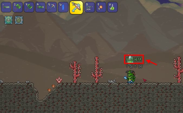 泰拉瑞亞遊戲中的暗黑碎塊可以通過前往困難模式,然後找到暗黑木乃伊或者食屍鬼、沙鯊處擊敗後有百分之十的概率掉落暗黑碎塊。
