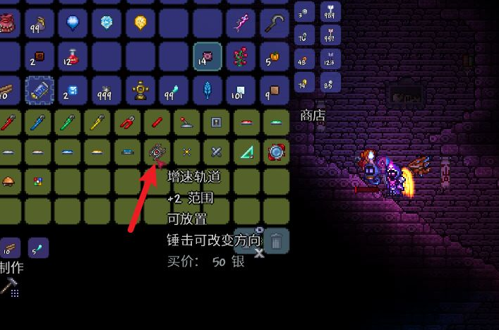 首頁 泰拉瑞亞 問答 泰拉瑞亞軌道在哪買? 2022-10-12 1、首先我們在地牢入口處召喚並擊敗骷髏王。2、然後我們在地牢中洞穴層拯救被縛的機械師。3、然後我們和機械師對話點擊商店按鈕。4、最後我們找到鐵軌選項購買即可。