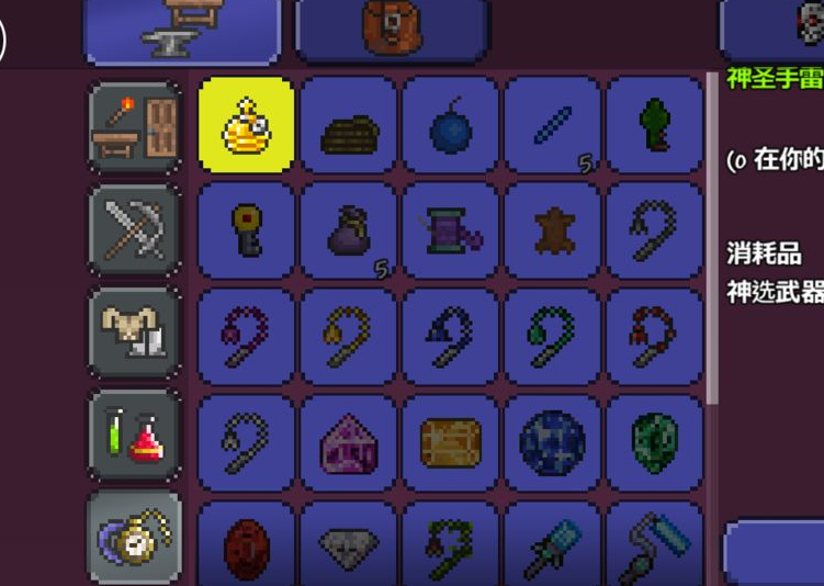 首頁 泰拉瑞亞 問答 泰拉瑞亞神聖手雷怎麼做? 2022-10-13 1、與毀滅者NPC對話,進入毀滅者商店,購買炸藥。2、攜帶空瓶進入水中,製作瓶裝水。3、攜帶炸藥、瓶裝水,靠近工作台。4、開啟製作頁面,消耗5個炸藥、5個瓶裝水,合成神聖手雷。