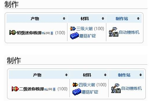 首頁 泰拉瑞亞 問答 泰拉瑞亞核彈怎麼獲得? 2022-10-13 泰拉瑞亞核彈是合成而來的,當我們使用三級火箭和蘑菇礦錠進行合成時,可以獲得初級迷你核彈。使用四級火箭和蘑菇礦錠進行合成時,可以獲得二級迷你核彈。如下圖所示:
