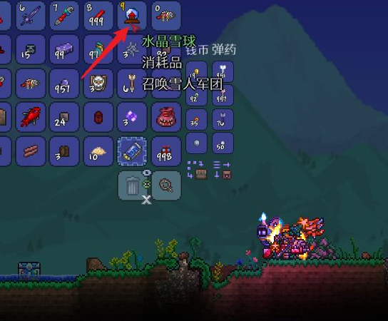 4、將雪景球放入快捷物品欄,點擊即可召喚。