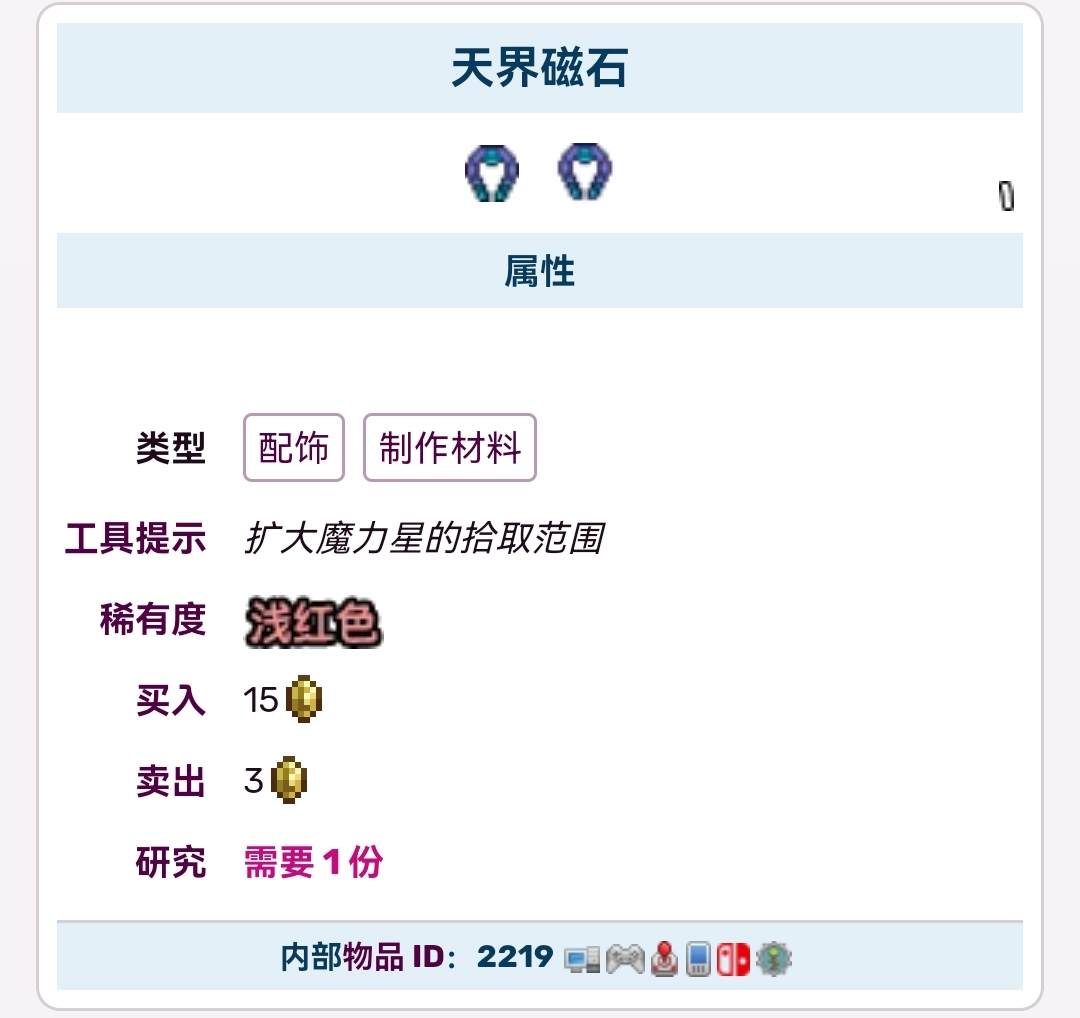 首頁 泰拉瑞亞 問答 泰拉瑞亞天界磁石有什麼用? 2022-10-14 天界磁石是一種能大大增加魔力星星拾取范圍的配飾。它可從旅商處以 15 的價格購買。拾取范圍會提高 18.75 格,將基礎的 2.625 格範圍擴展到 21.375 格。此效果與天界磁石的任何升級物都不會疊加。