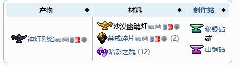 首頁 泰拉瑞亞 問答 泰拉瑞亞沙漠幽魂燈有什麼用? 2022-10-14 1.在遊戲泰拉瑞亞中,沙漠幽魂燈是用來合成神燈烈焰的材料;2.同時沙漠幽魂燈還是是一種裝飾傢具物品,儘管是一盞燈,但它放置後並不會產生光線,也不能用作房屋的光源。