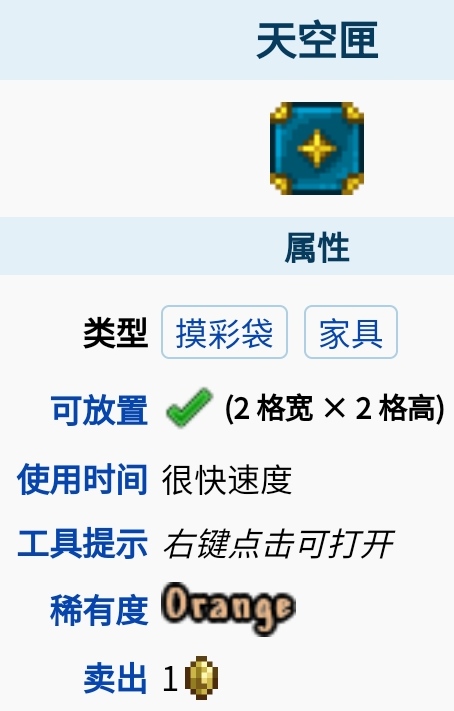 在泰拉瑞亞這款遊戲中,天空匣是只有在高海拔區域(例如釣魚空島)釣魚才能有幾率獲得的寶匣。天空匣的內容相當於天域箱。