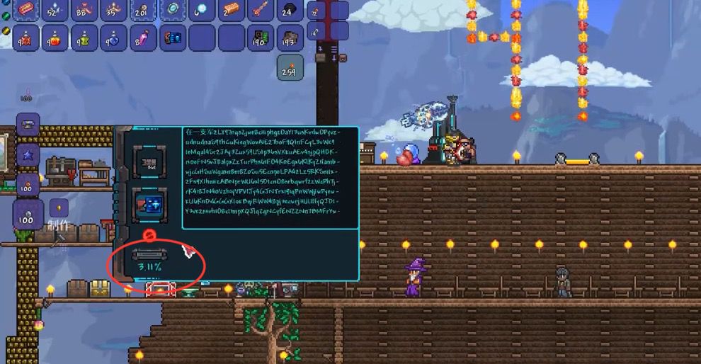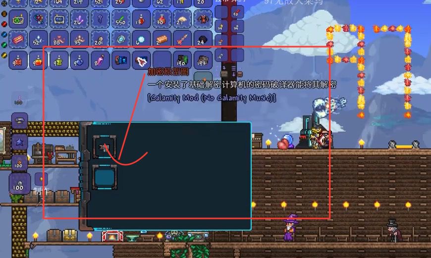 1、在泰拉瑞亞中,通過災厄嘉登實驗室里點擊下圖這個解密計算機,就會顯示左邊這個藍色方框。