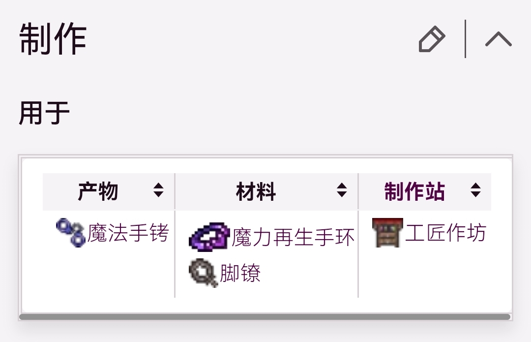首頁 泰拉瑞亞 問答 泰拉瑞亞腳鐐可以合成什麼? 2022-10-18 腳鐐可以合成魔法手銬。魔法再生手環和腳鐐在工匠作坊這個地方可以合成魔法手銬。腳鐐是在夜晚生成的殭屍或者是骷髏在擊敗他們之後就有可能掉落的。魔力再生手環是用再生手環和魔力手環在工匠作坊處合成的。