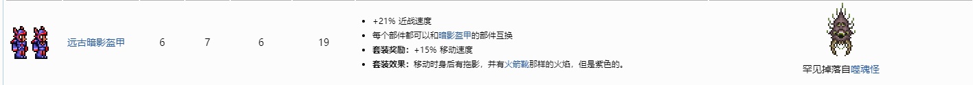 首頁 泰拉瑞亞 問答 泰拉瑞亞遠古套裝屬性怎麼樣? 2022-10-18 1、在泰拉瑞亞這款遊戲中,遠古套裝一共有兩套,分別是遠古暗影盔甲和遠古神聖盔甲,其中遠古暗影盔甲的套裝屬性是移動速度提高15%。2、遠古神聖盔甲的屬性是攻擊敵人後進入免疫狀態(仆從數量上限提高2個)。
