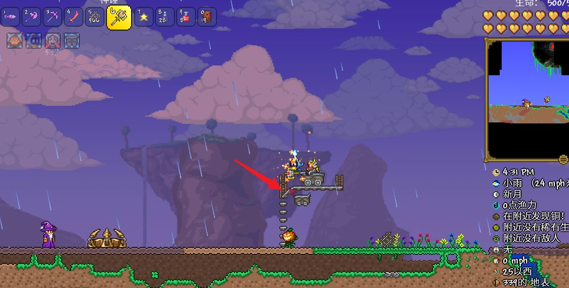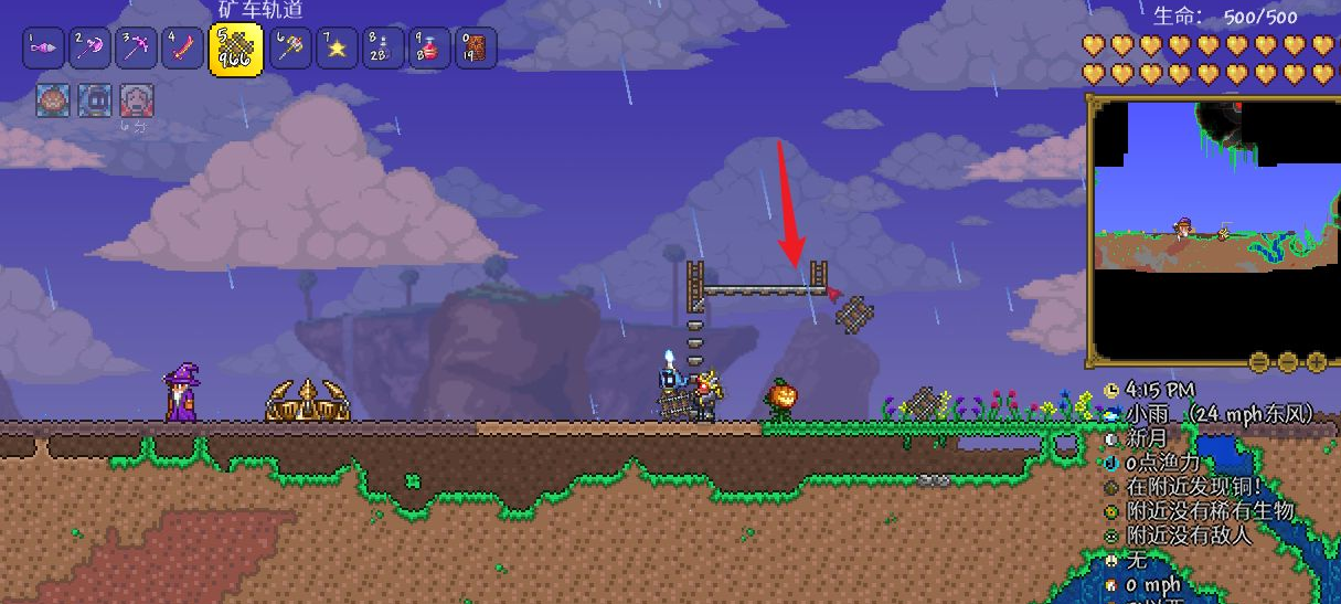 2.選擇背包中任意一把錘子,用錘子砸交兩端軌道的交叉點,形成拐彎軌道即可轉圈。