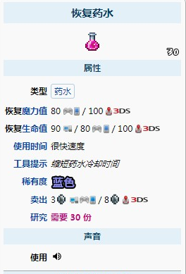 2.PC端恢復藥水能給玩家回復90點生命值和魔力值,主機和手機端給玩家回復80點生命值和魔力值。