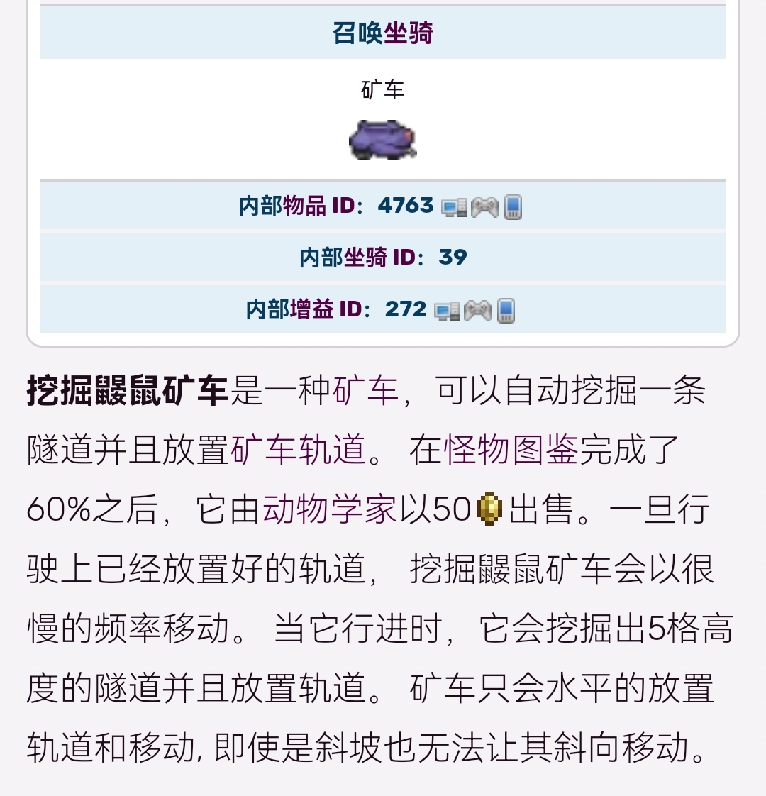 首頁 泰拉瑞亞 問答 泰拉瑞亞鼴鼠礦車怎麼自動鋪軌道? 2022-10-20 挖掘鼴鼠礦車是一種礦車,可以自動挖掘一條隧道並且放置礦車軌道。 當它行進時,它會挖掘出5格高度的隧道並且放置軌道。 礦車只會水平的放置軌道和移動, 即使是斜坡也無法讓其斜向移動。