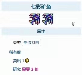 首頁 泰拉瑞亞 問答 泰拉瑞亞七彩礦魚怎麼獲得? 2022-10-20 七彩礦魚獲得方法介紹:在遊戲《泰拉瑞亞》中,七彩礦魚在困難模式任意地層的神聖之地的水塘中釣取,是遊戲中唯一稀有度為橙色的魚,七彩礦魚還可以用來製作成生命力葯水。