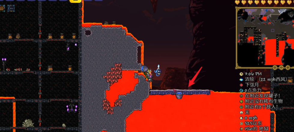 第二步製作黑曜石,把水倒在岩漿上得到黑曜石。
