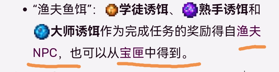 首頁 泰拉瑞亞 問答 泰拉瑞亞大師魚餌怎麼獲得? 2022-10-21 大師魚餌獲得的方式有兩種,一種是在漁夫處接釣魚任務完成漁夫給你的任務後,他有可能獎勵大師魚餌給你,第2種是通過釣魚獲得的寶閘獲得的大師魚餌。