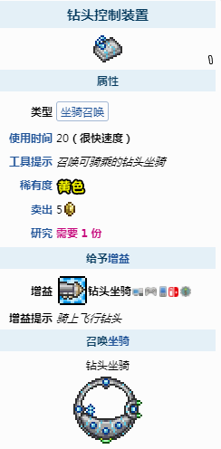 3、還有一個是鑽頭控制裝置,可以說是遊戲中名副其實的挖掘神器,自帶無限飛行加懸停的功能,使用後會召喚挖掘機坐騎。