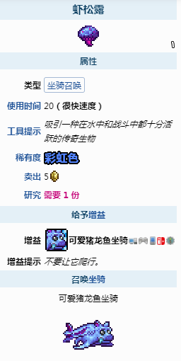 1、蝦松露,使用後可以召喚出一隻叫可愛豬龍魚的坐騎,在遊戲過程中按R鍵即可召喚,這個坐騎可以無限飛行。