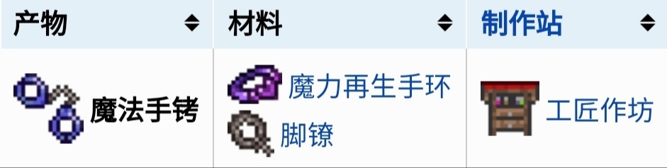 在泰拉瑞亞這款遊戲里,魔法手銬主要是通過合成的方法來獲得,玩家可以使用魔力再生手環和腳鐐在工匠作坊這個製作站合成。