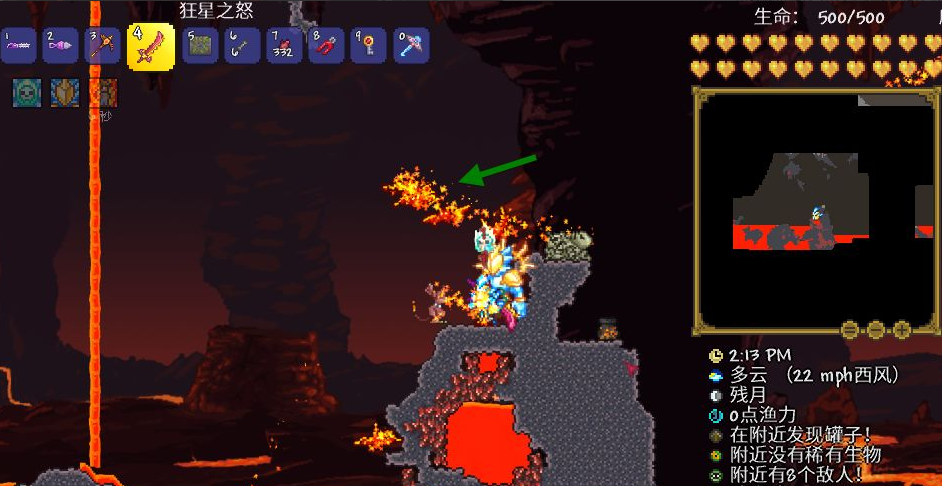 1、首先玩家需要進入地表層以下的區域,然後在區域中密集放置100根火把後就可以觸發火把神時間。2、事件開始後地上的火把會向玩家發射小火球並熄滅,當100根火把全部熄滅後時間就會結束。3、過於丟按時間火把會重新點燃,並且可以掉落火把神徽章,火把神徽章可以讓玩家手中和放置的普通火把變為當前生物群落對應的火把。