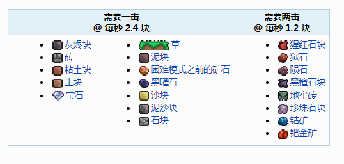 首頁 泰拉瑞亞 問答 泰拉瑞亞熔岩鎬能挖什麼? 2022-10-22 在泰拉瑞亞遊戲中,玩家使用熔岩鎬可以挖掉肉山之後的鈀金礦、鈷藍礦以及肉山以前的所有礦物。熔岩鎬在肉山以前算是最好的鎬子,非常好用。熔岩鎬可挖礦物具體如下: