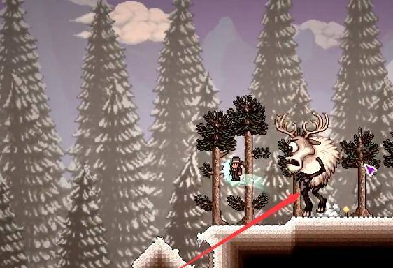 3、然後到這個時候獨眼巨鹿就會在雪地里出現了,我們直接去雪地里找它使用召喚器即可。