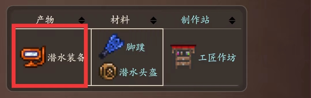 在遊戲《泰拉瑞亞》中,潛水裝備是一種配飾,玩家可以用腳蹼和潛水頭盔在工匠作坊處合成獲得。