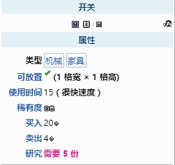開關是泰拉瑞亞中的一種機械道具,它不能被製作合成。玩家可以在機械師那購買開關,也可以在地牢處收集和掛鏈燈籠相連的開關。